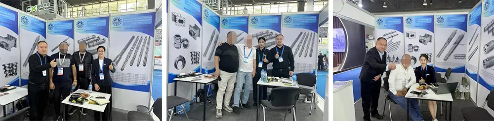 Bandhigga, ayaaZhoushan Nanhaiyawaabku waxa uu ahaa mid aad u mashquul badan. Alaabooyinka Xiddigaha ee lagu soo bandhigay bandhigga, sida screw dual-alloy and barrel iyo nitrided screw and barrel, ayaa soo jiitay dareenka baahsan ee cabirrada waxqabadka oo aad uga sarreeya heerarka warshadaha. Badeecadaha Nanhaiya ayaa dhamaantood laga dhisay birta daawaha ee 38CrMoAl waxaana lagu farsameeyay habab kala duwan, oo ay ku jiraan deminta iyo xanaaqa, sifada, iyo farsamaynta saxda ah. Gaar ahaan, dekedda sii daynta foosto, oo ah qayb nugul, waxay leedahay daahan cusub, goobaabin buuxda oo buufin carbide ah, gaarey adkaanta gudaha 62HRC, horumar la taaban karo marka loo eego celceliska warshadaha ee 58HRC.